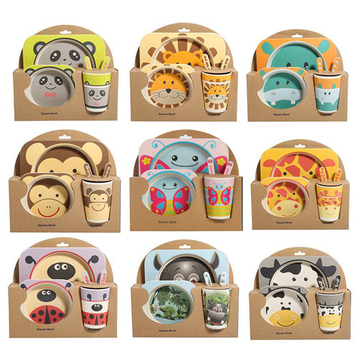 5PCS Children Tableware Set-Five-piece Natural Bamboo Fiber